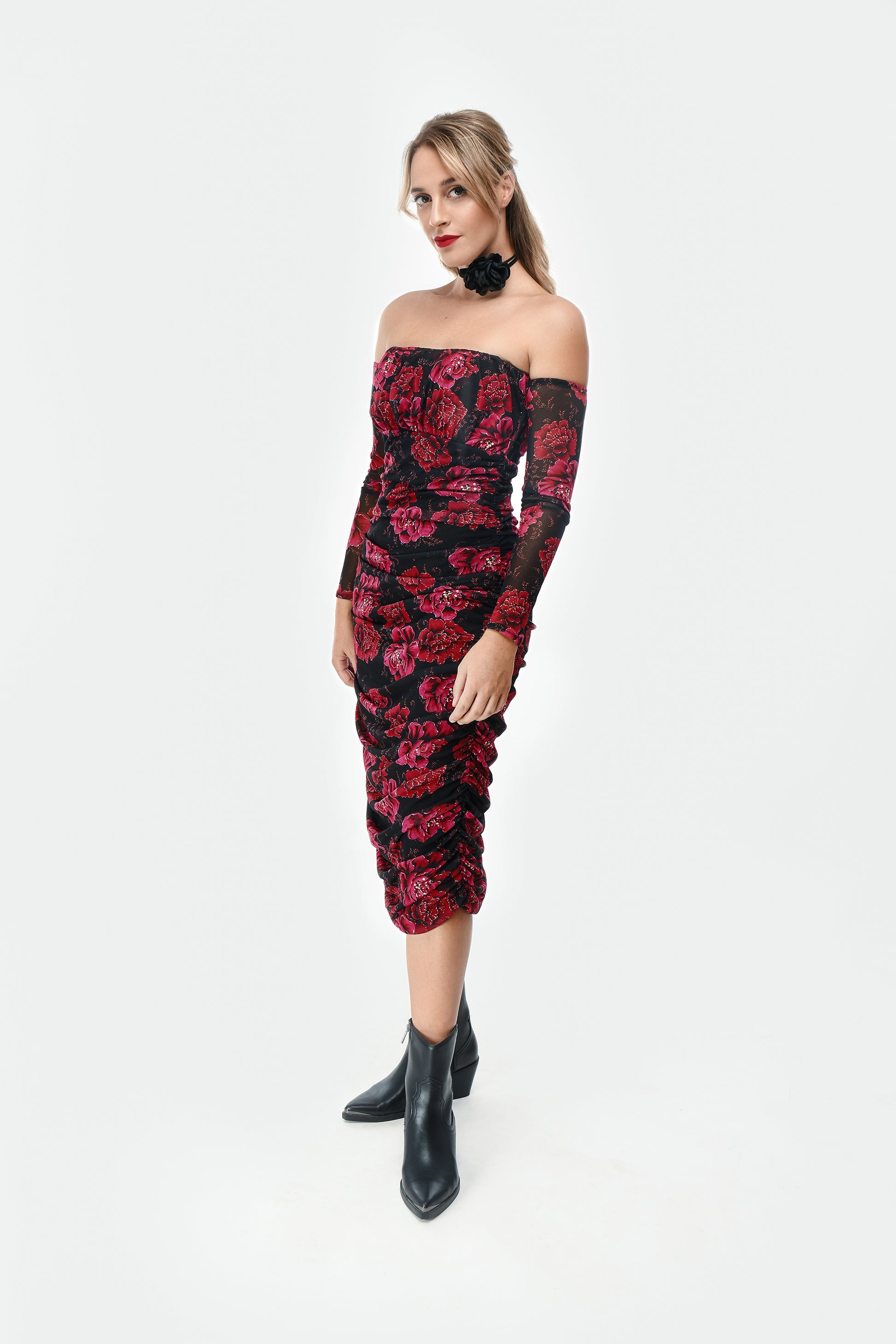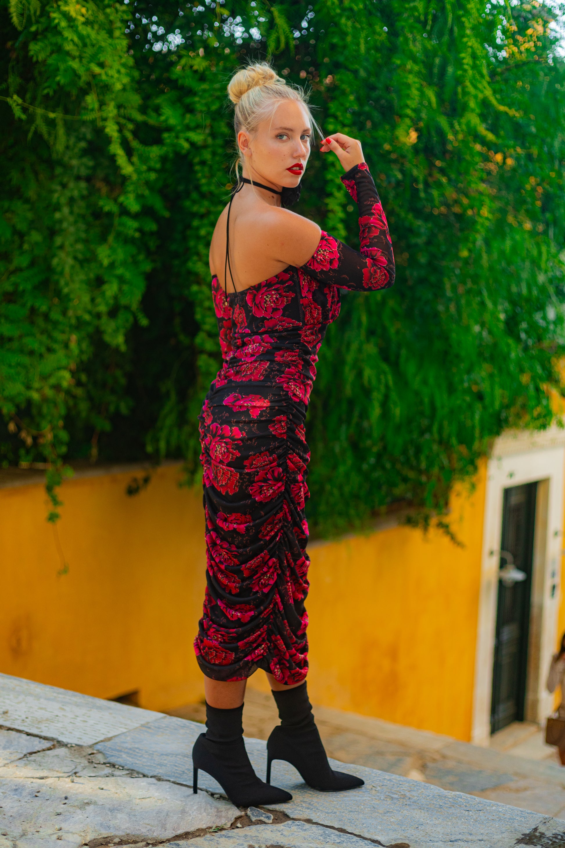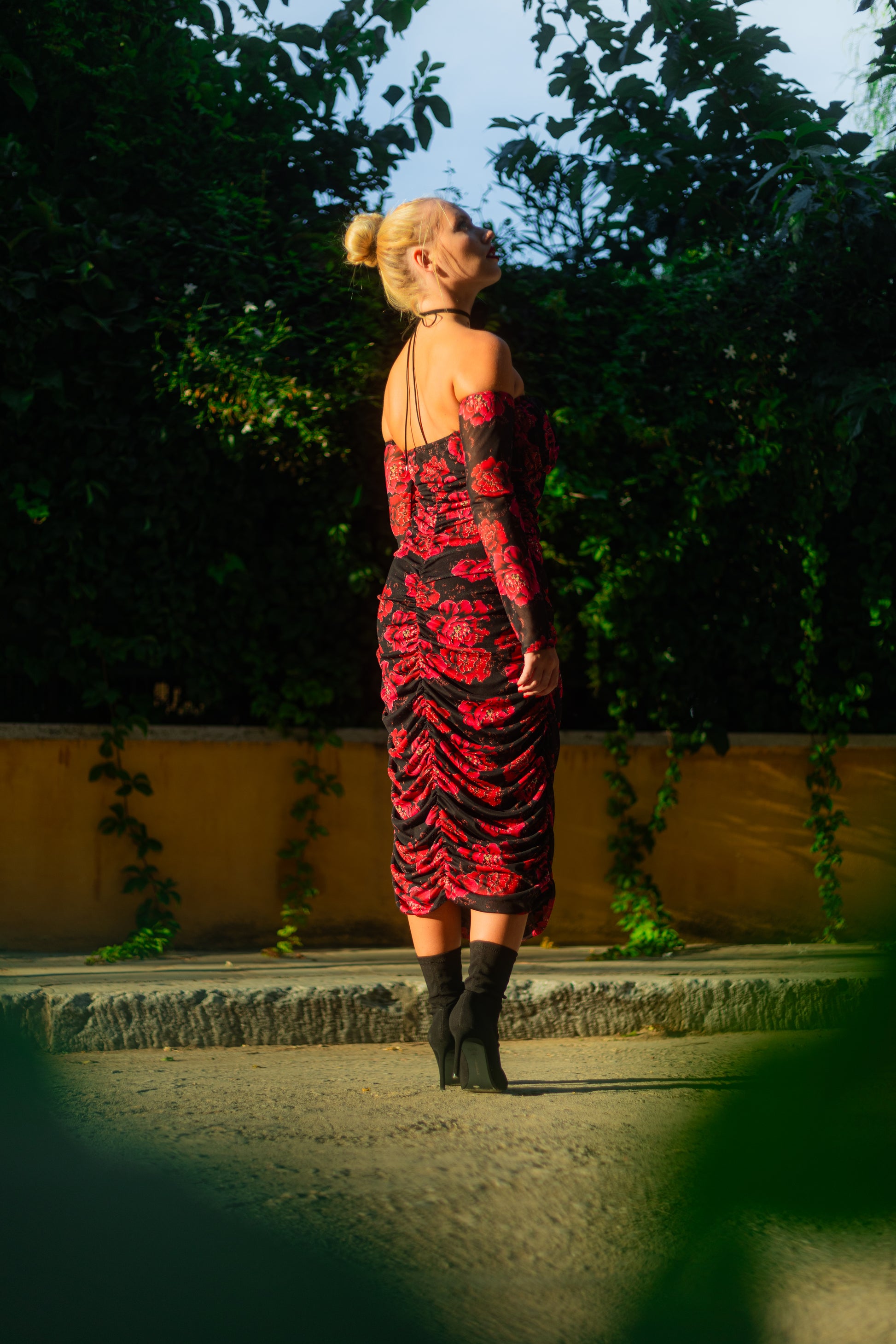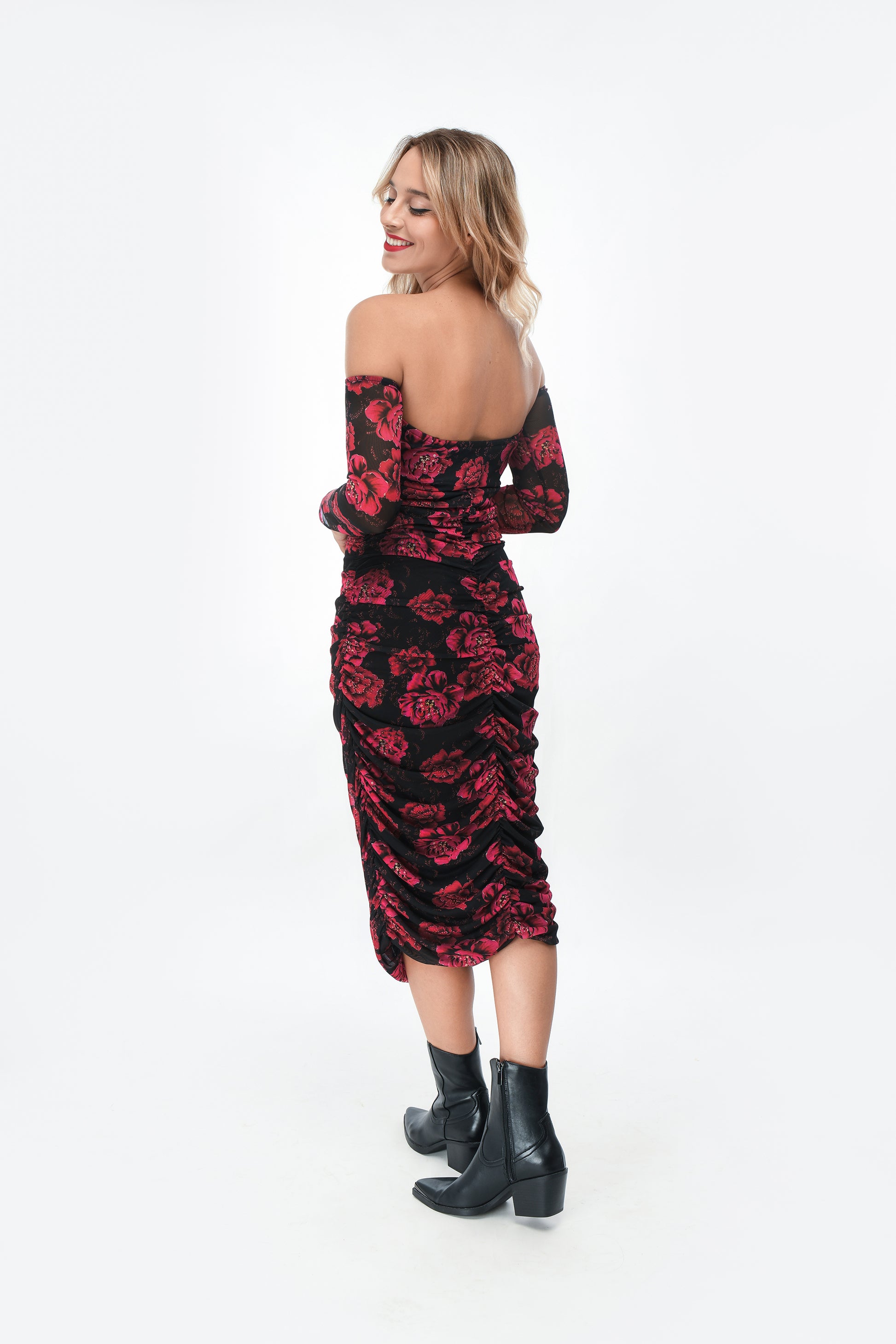 Amaryllis tulle dress is designed by soft fabric , with digital printed pattern. Wonderful fit, comes in two sizes, quite elastic. It consists double fabric with integrating lining and it is made to bring out your femininity silouete.